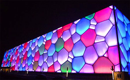 国家游泳中心又被称为“水立方”(Water Cube),位于北京奥林匹克公园内,是北京为2008年夏季奥运会修建的主游泳馆,也是2008年北京奥运会标志性建筑物之一。它的设计方案,是经全球设计竞赛产生的“水的立方”方案。2003年12月24开工,在2008年1月28日竣工。其与国家体育场(俗称鸟巢)分列于北京城市中轴线北端的两侧,共同形成相对完整的北京历史文化名城形象。国家游泳中心规划建设用地62950平方米,总建筑面积65000-80000平方米,其中地下部分的建筑面积不少于15000平方米,长宽高分别为 177m × 177m × 30m。到目前,来自101个国家和地区的35万多港澳台同胞及海外侨胞共捐献了8.5亿人民币。其中郑裕彤、郑家纯父子及属下企业曾捐赠五千万元人民币。