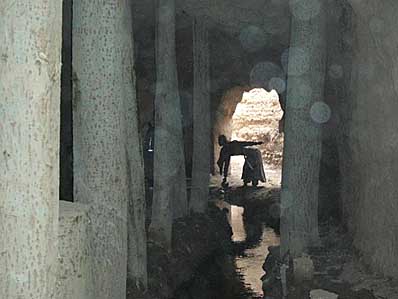 吐鲁番坎儿井,出现在18世纪末叶。主要分布在吐鲁番盆地、哈密和禾垒地区,尤以吐鲁番地区最多,计有千余条,如果连接起来,长达5000公里,所以有人称之为“地下运河”。“坎儿”即井穴,是当地人民吸收内地“井渠法”创造的,它是把盆地丰富的地下潜流水,通过人工开凿的地下渠道,引上地灌溉、使用。