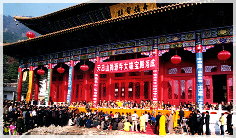 天王殿,是进山门第一殿,砖木结构,朱红油漆。殿前庭院中,有一古罗汉松,枝干盘曲,古朴苍劲。天王店后,登石阶36级就是韦驮殿。砖木结构,浮雕门窗。院内有清代所植的金桂、银桂和枇杷等古树名木。