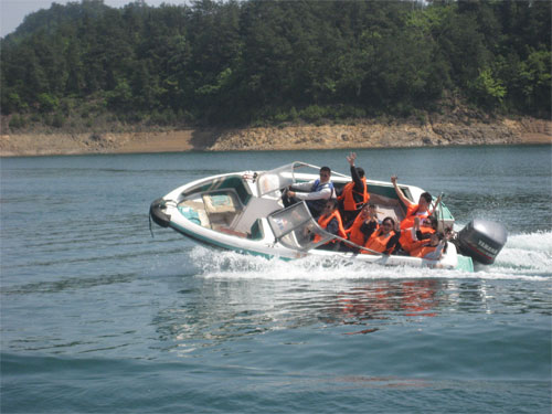 200马力的水上快艇:坐上敞蓬式的200马力快艇,还不等您的思想准备充分,刺激的快感就随之而来,左倾右弯,直冲上跳,当你正在担心游艇是否会翻江倒海时,一个高潮,来个180度的大转圈,您可以尖声喊叫,嗷嗷大叫,用超60分贝的喉咙歌唱,发泄平时的压抑,那种集体的大喊还真能响彻整个湖面,包管您玩了之后会大呼过瘾。